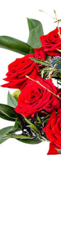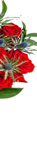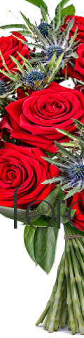 12 Red Roses with Blue Eryngium Thistle